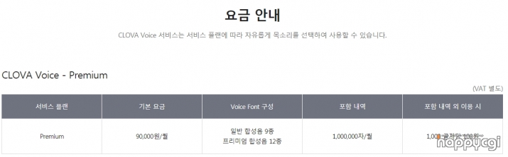 기존 타사에서 제공하던 유료 TTS 금액을 생각해보면 Clova voice 이용금액이 크게 부담스럽게 느껴지지는 않습니다.