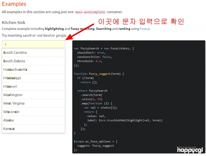 http://hakib.github.io/MassAutocomplete/ 페이지로 접속시 다양한 예제와 소스를 확인이 가능 합니다.