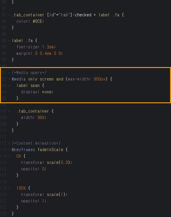 브라우저의 크기가 900px 미만일때 탭의 텍스트가 사라집니다.