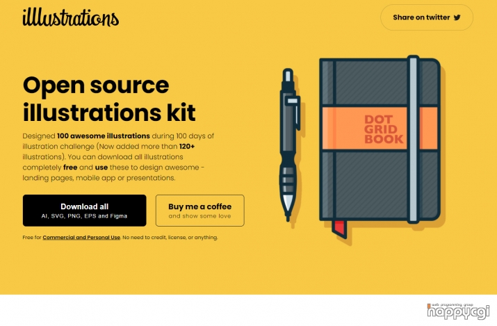 illlustrations에서는 100여종의 일러스트 이미지를 무료로 다운받아 사용할 수 있습니다.