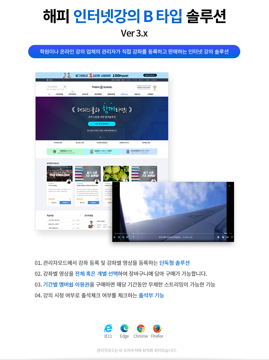 해피 인터넷강의 솔루션 타입B Ver3.0 [단독형] 이 새롭게 버전업 하였습니다.