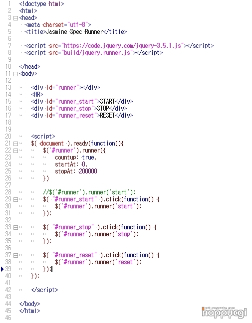 먼저 jQuery Library 를 호출하세요.<script src="jquery.js" type="text/javascript">script> <script src="jquery.runner.js" type="text/javascript">script>