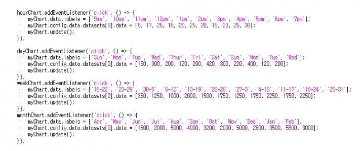 차트의 데이터는 동일 경로의 script.js 에 선언되어 있습니다.