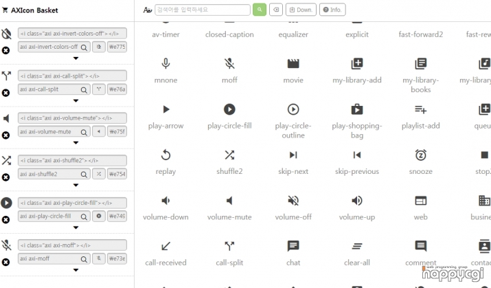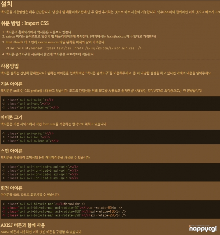 http://axisj.com/axicon/ 페이지에서 이용방법을 확인을 할 수 있습니다.