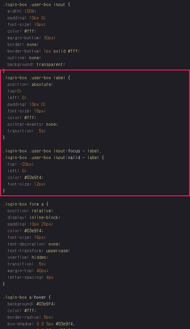 인풋 박스에 포커스가 되면 라벨을 이용한 인풋 타이틀이 위치가 변경됩니다.
