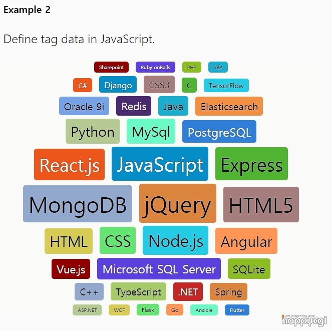 해피CGI윤실장 2021. 5. 6. 09:24우선 순위(가중치) 에 따라서 각 태그에 해당하는 텍스트 크기를 동적으로 생성하는 SEO 에 친화적인 클라우드 태그 생성기 입니다.