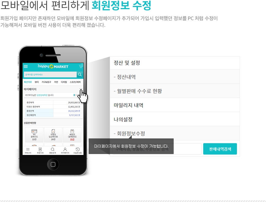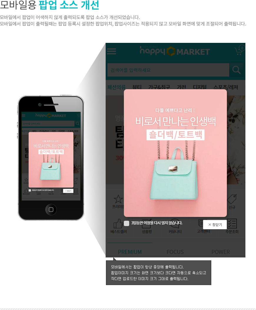 - 해피 오픈마켓 솔루션 모바일 Ver3.1 (타입D 장착옵션)