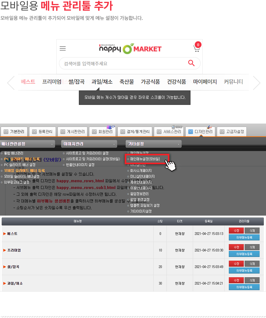 [해피CGI][cgimall] 해피 오픈마켓 솔루션 모바일 Ver3.1 (타입C 장착옵션)로 업그레이드 되었습니다