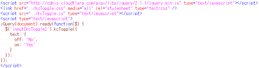 아래와 같이 checkbox 태그 마지막에 kcToggle 을 붙여주면 변환되며