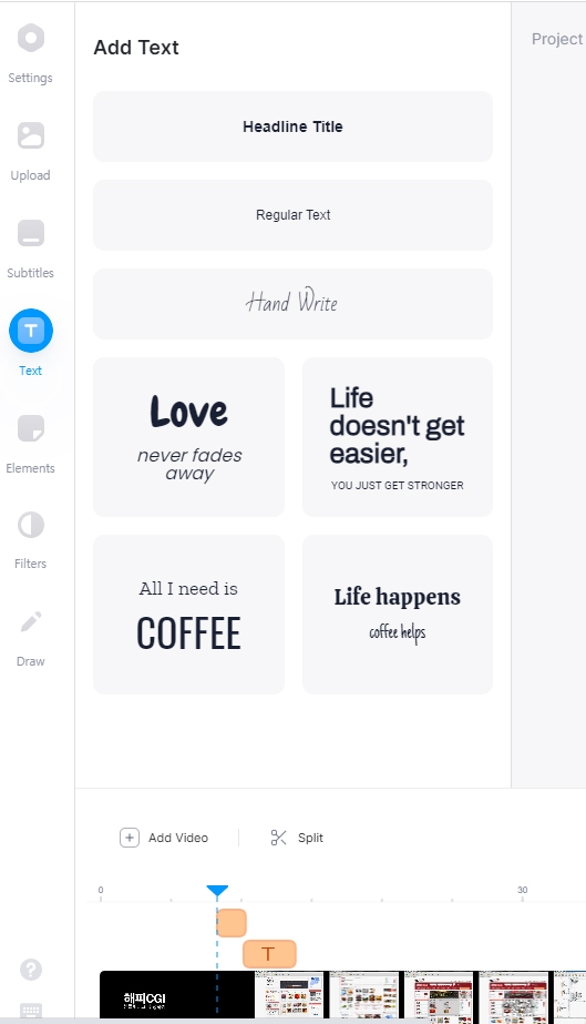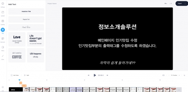 가장 인상적인 부분으로는 "자막" 을 넣는데 몇번을 클릭으로 쉽게 내가 원하는 자막을 넣을 수 있습니다.