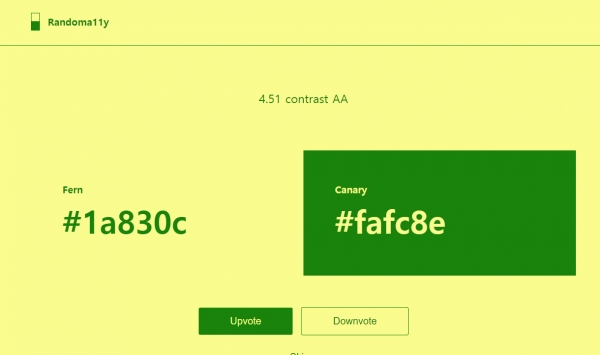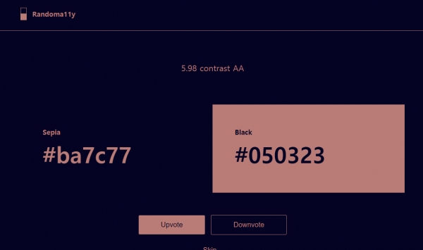 새로고침하거나 skip 버튼을 클릭하면 랜덤으로 포인트 컬러 조합을 보여주는 randoma11y 입니다.