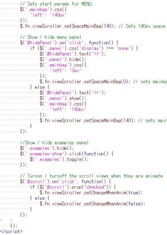 마지막으로 하단에 필요한 js 호출 및 스크립트를 선언합니다