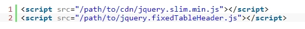 1. 파일 상단에 Jquery 라이브러리와 jquery.fixedTableHeader.js 파일을 링크합니다.