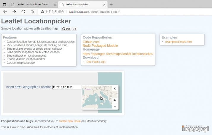 [해피CGI][cgimall] 지도를 이용한 위치정보(위도,경도) 선택기 본문