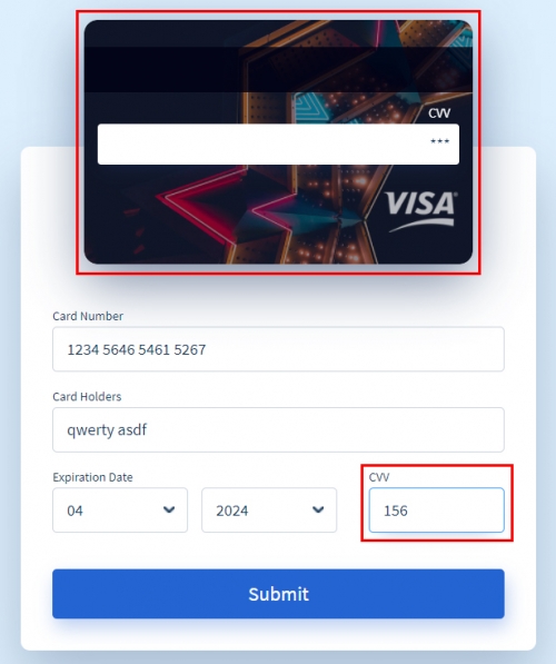 카드 뒤에 있는 CVV 번호를 입력시 카드 뒷면까지 보여주는 등