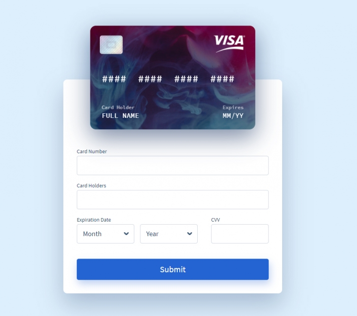 vue.js를 이용하여 만들어진 입체적인 카드 입력폼을 확인해보세요.