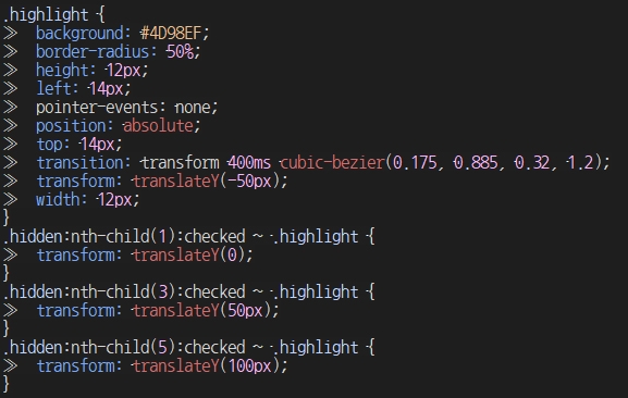 라디오 버튼 선택시 선택되는 점이 부드럽게 슬라이딩 되어 선택됩니다.