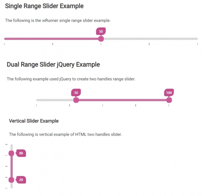 싱글, 듀얼 타입과 옵션으로 세로형 슬라이더도 있습니다.