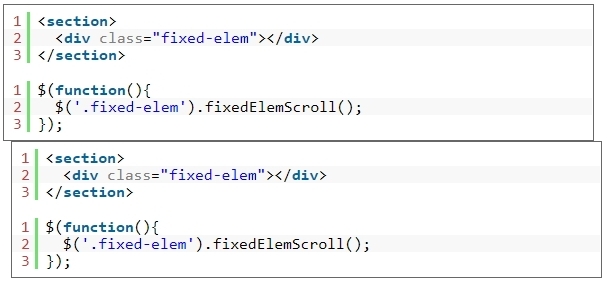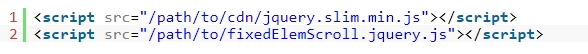 1. 파일 상단에 Jquery 라이브러리와 fixedElemScroll.jquery.js 파일을 로드합니다.