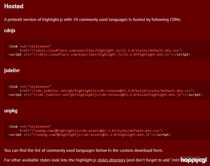 사용방법은 https://highlightjs.org/usage/ 페이지에서 확인 하실수가 있으며,