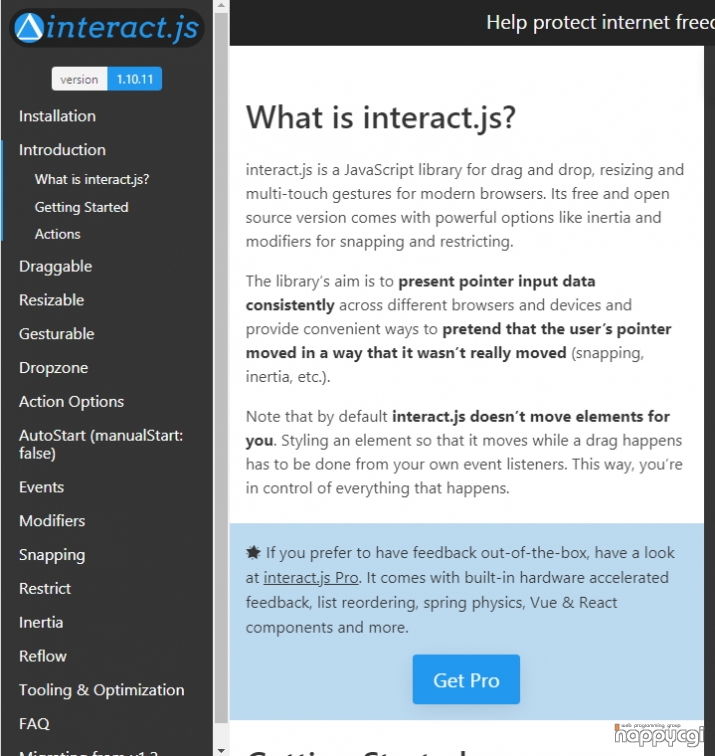최신버전의 소스는 https://github.com/taye/interact.js 페이지를 통해 다운로드 할 수 있습니다.
