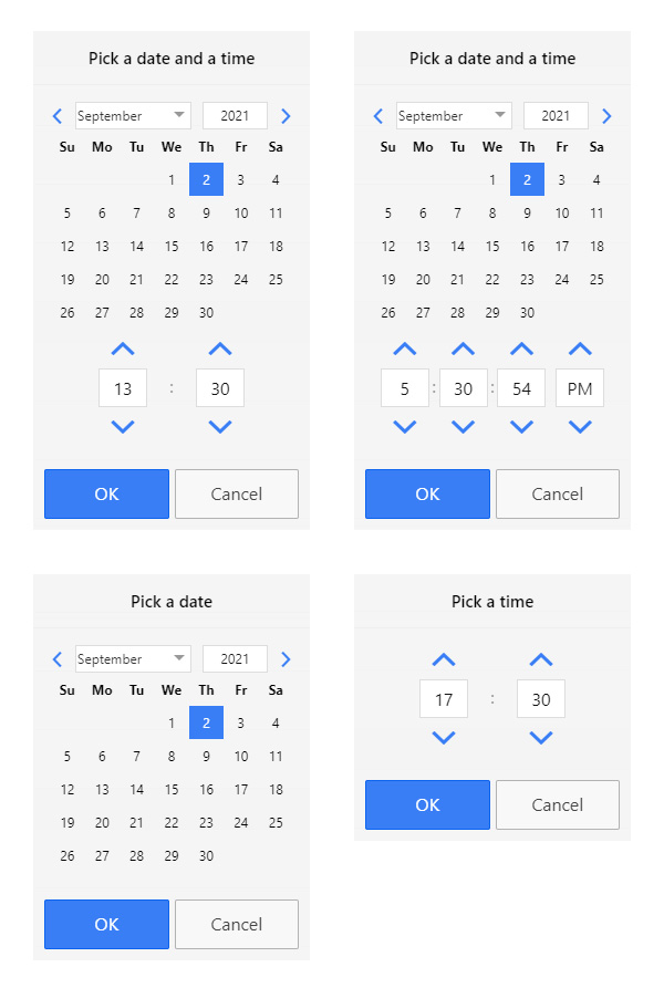 상황에 따라 날짜와 시간 모두 설정하거나 개별로 사용이 가능합니다.