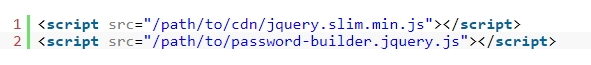 1. 파일 상단에 Jquery 라이브러리와 password-builder.jquery.js 파일을 로드합니다.