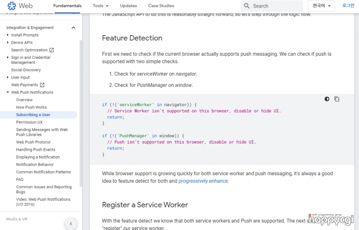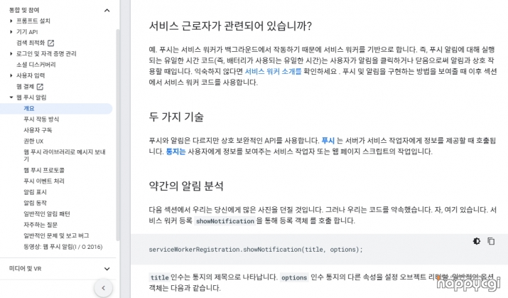 구글 크롬 브라우저에서 웹푸시 알림 기능을 구현 할 수 있도록 안내 하는 홈페이지 입니다.