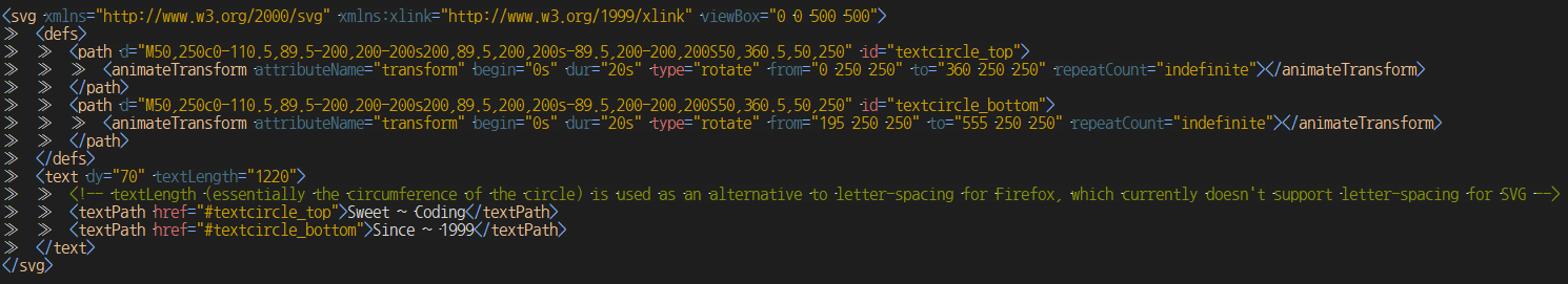 <textPath xlink:href="#textcircle_top">Sweet ~ Coding</textPath>