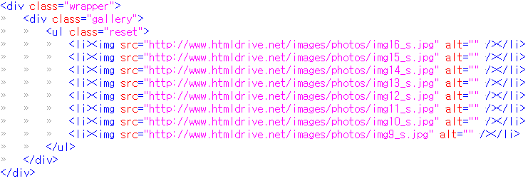 이미지 갤러리에 사용될 이미지 html 구성을 아래와 같이 삽입합니다