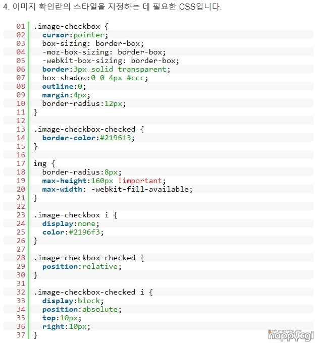 4번 과정은 화면에 표시되는 이미지들의 모양을 위해서 필요한 CSS 입니다.