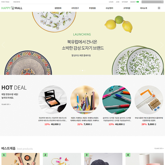 [해피CGI][cgimall][출시] 쇼핑몰04 (생활잡화) 와이드 홈페이지 솔루션이 새롭게 출시 되었습니다.