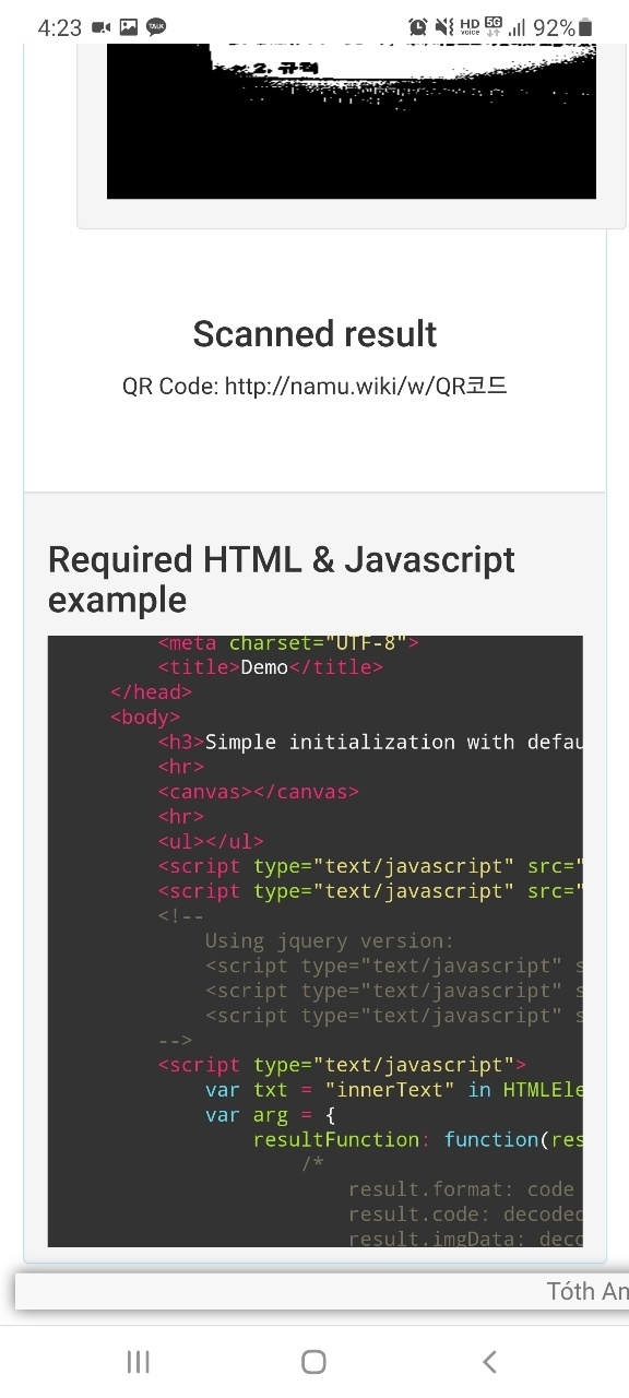 아래는 QR코드를 스캔한 결과입니다. (Scanned result)