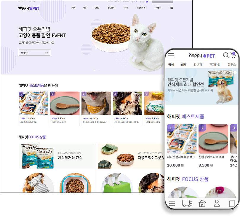 [해피CGI][cgimall][출시] 쇼핑몰08 (반려동물 쇼핑몰) 와이드 홈페이지 솔루션이 새롭게 출시 되었습니다.
