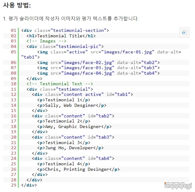 [해피CGI][cgimall]Tab Style Testimonial Slider Example 본문
