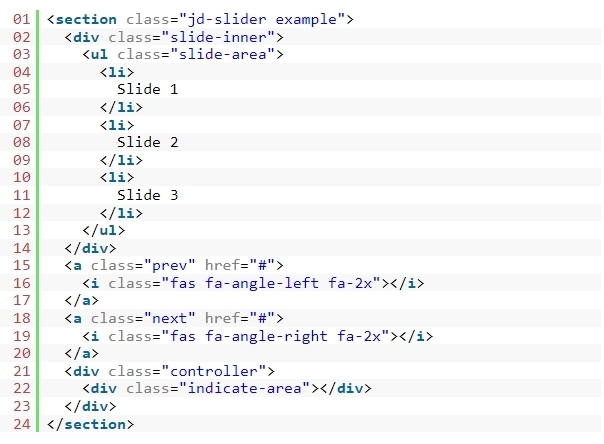 1. 파일 상단에 Jquery 라이브러리와 jdSlider 라이브러리, css 파일을 로드합니다.