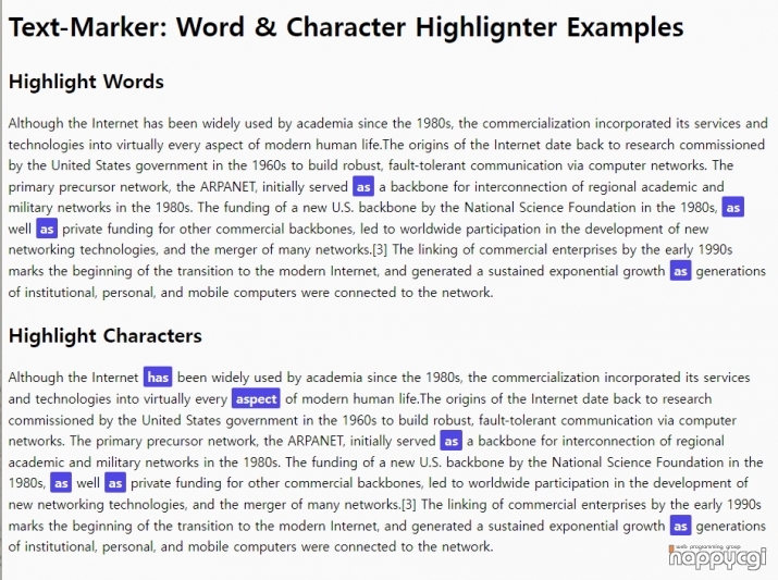[해피CGI][cgimall]단어 및 문자열 강조 표시 JQuery 플러그인 - TUS.Marker 본문