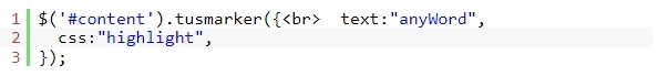 2. 강조 표시할 단어와 사용자 정의 CSS 클래스를 정의하여 플러그인을 호출합니다.