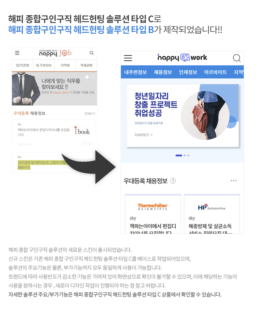[출시] 해피 종합구인구직 헤드헌팅 솔루션 타입 B 모바일 Ver1.7 (장착옵션)이 출시되었습니다.