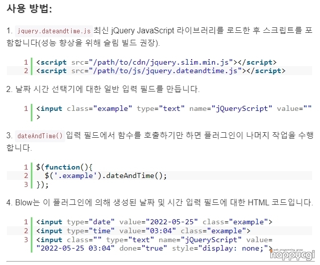 [해피CGI][cgimall]Minimal User-friendly Date Time Picker - jQuery Dateandtime.js 본문