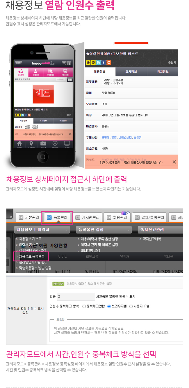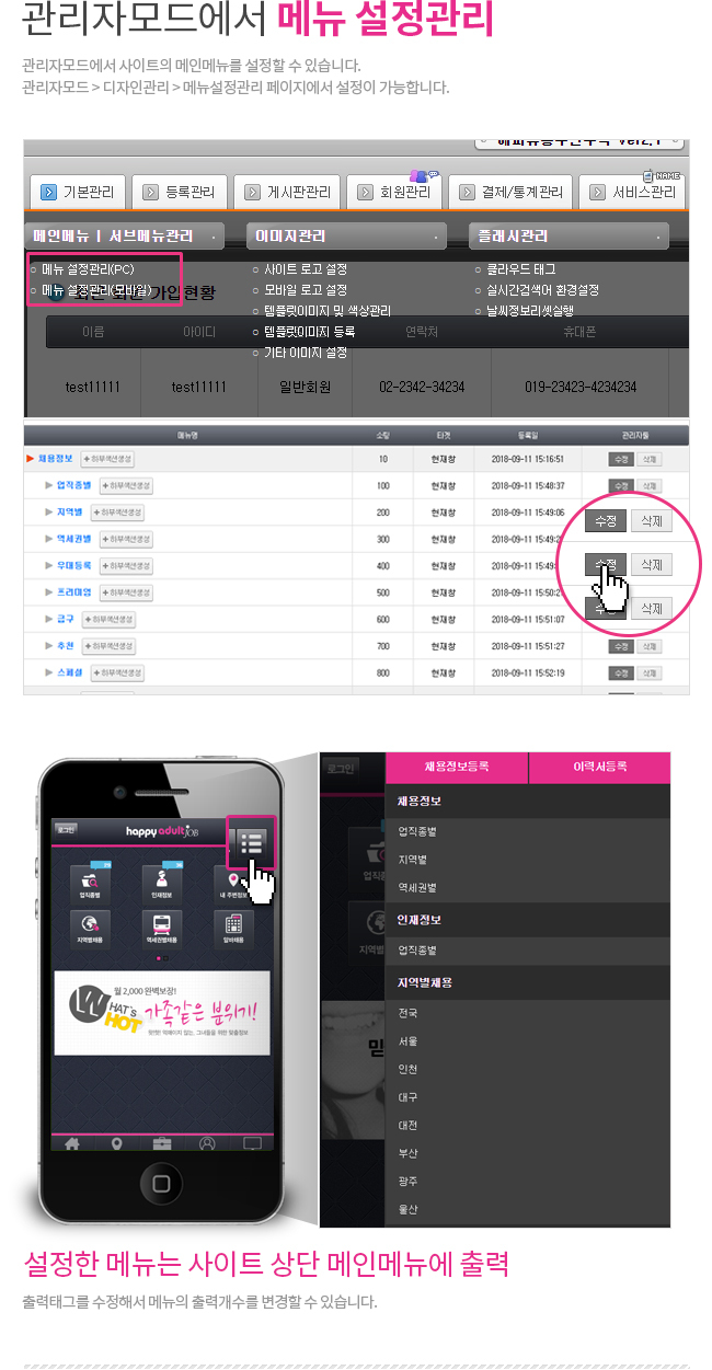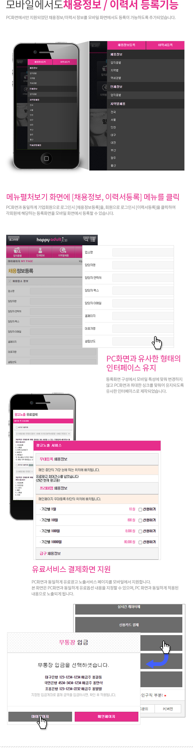 [해피CGI][cgimall][업그레이드]해피 유흥구인구직 솔루션 모바일 Ver1.5 (장착옵션)로 업그레이드 되었습니다.