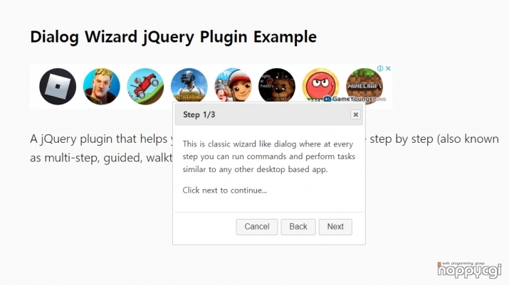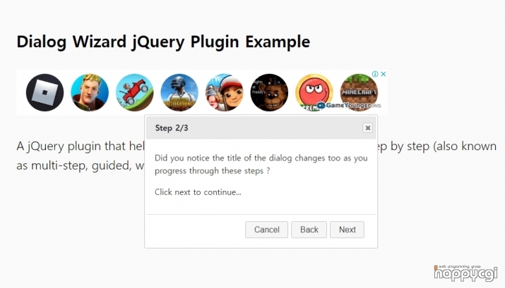 [해피CGI][cgimall]Draggable Step Wizard Plugin - jQuery Dialog Wizard