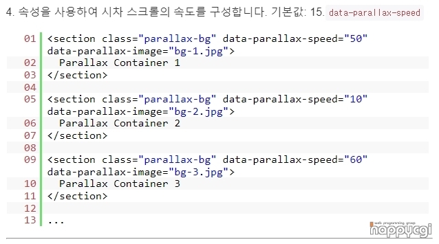 웹페이지의 배경에 시차를 둔 스크롤 효과를 확인해볼 수 있습니다.