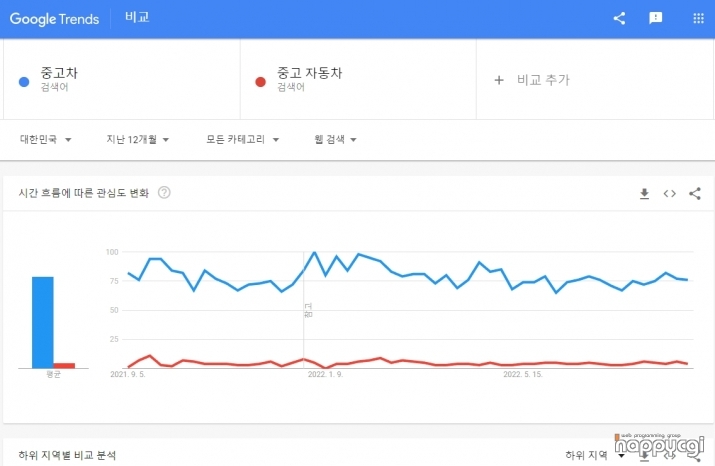검색어 비교 기능도 있으므로 아래와 같이 비교하여 결과물도 확인이 가능 합니다.