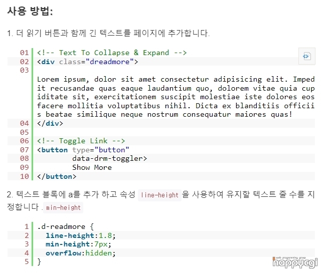 [해피CGI][cgimall] Toggle Long Text Block With Smooth Animations - dReadmore