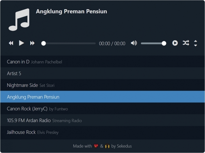JavaScript 로 만들어진 HTML5 형 오디오 플레이어 입니다.