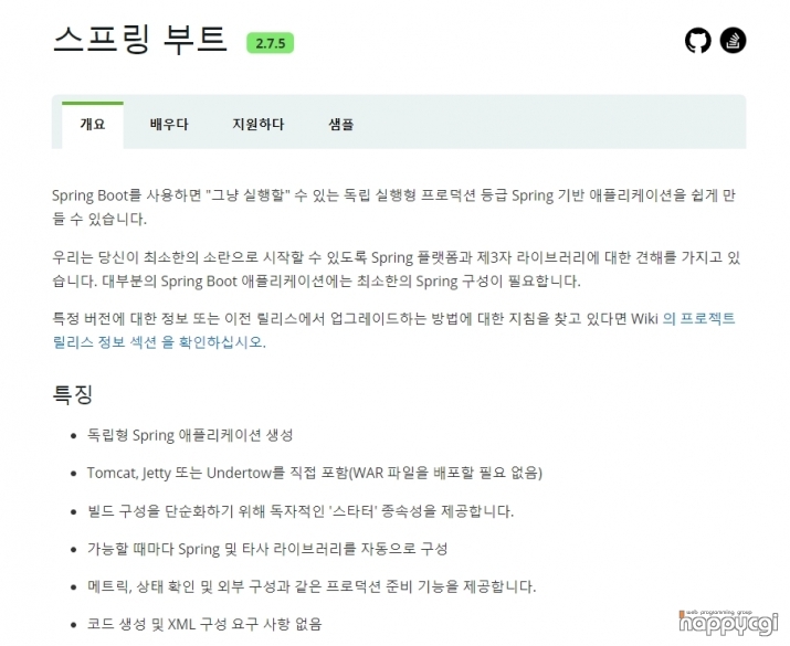 Spring Boot의 개요와 프로젝트 시작 방법은 홈페이지에서 확인 가능합니다.