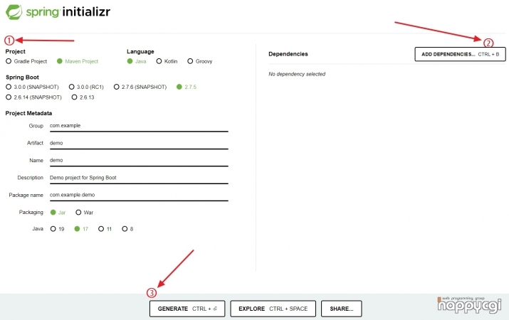 해당 사이트에서 Srping boot 웹 프로젝트를 생성할 수 있습니다.