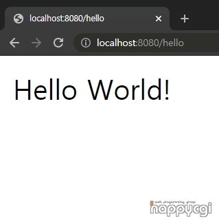 브라우저에서 http://localhost:8080/hello 로 접속하시면, 아래와 같이 뜨게 됩니다.