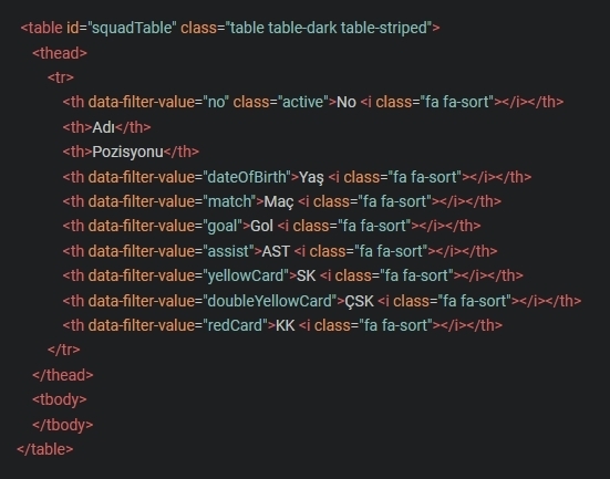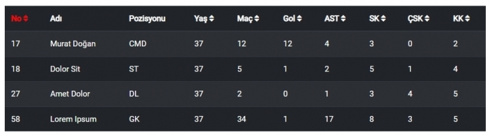 그리고 테이블의 해더를 클릭하면 정렬(소팅) 할 수 있는 소스코드 입니다.
